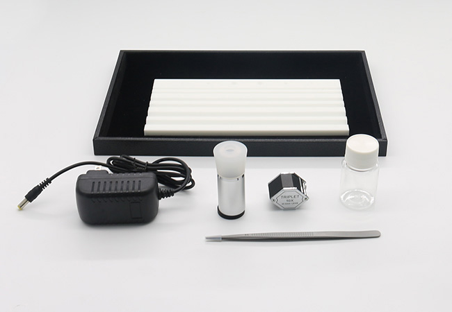 5. It comes with tray, grading board, gem loupe, diamond tweezers, cutting loupe and alcohol jar.